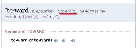We finished; I raced back upstairs to the burlap comfort of my cubicle; I pulled up the entry for “towards” in the Online Dictionary.